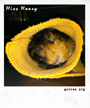 將天竺鼠平鋪在乾淨的抹布上(要放在抹布的邊上), 一切就定位後, 開始捲. 捲到抹布完全跟天竺鼠融合在一起, 豆皮鼠壽司就完成.